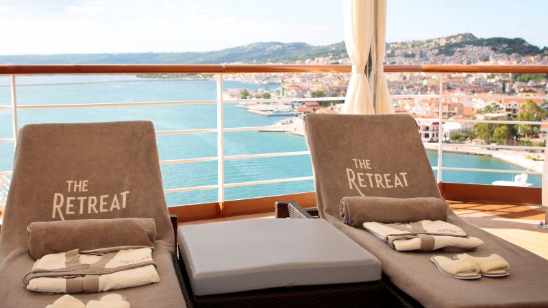 The Retreat est un espace extérieur idéal pour les clients qui souhaitent un endroit plus calme dans un cadre luxueux afin de se ressourcer pendant leur croisière.