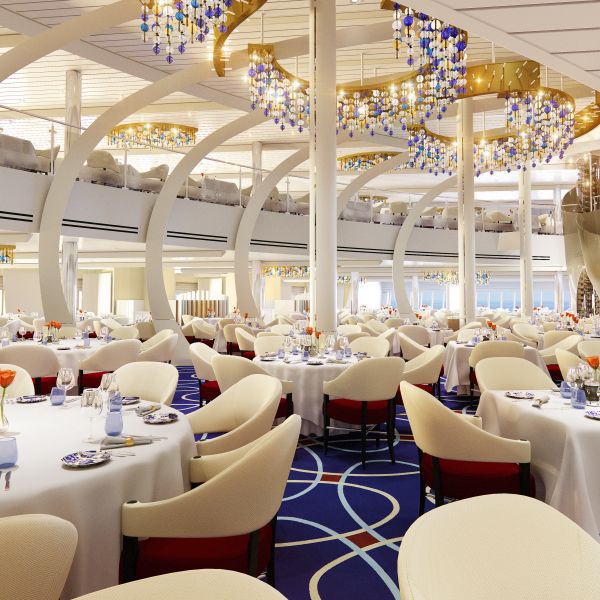 Pour un petit-déjeuner élégant, un déjeuner tranquille ou un dîner inoubliable composé de plusieurs plats, ce restaurant est votre destination. Dans les coulisses, notre Conseil culinaire®, une équipe d'élite composée de chefs de renommée mondiale, et nos talentueux chefs exécutifs à bord ont travaillé pour que chaque plat atteigne la perfection. Pour le dîner, choisissez parmi les classiques tels que la longe d'agneau désossée en croûte, le poulet rôti au romarin, la cuisine d'inspiration régionale ou bien des plats végétariens préparés avec art. Enrichissez votre voyage culinaire avec une vaste sélection de vins, choisis avec soin par James Suckling, un des plus importants et des plus influents, critique en vins.