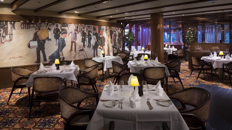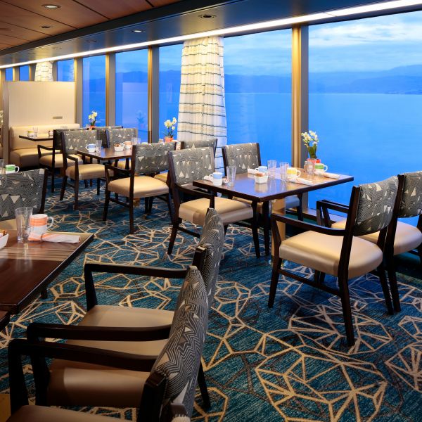 Pour un petit-déjeuner élégant, un déjeuner tranquille ou un dîner inoubliable composé de plusieurs plats, ce restaurant est votre destination. Dans les coulisses, notre Conseil culinaire®, une équipe d'élite composée de chefs de renommée mondiale, et nos talentueux chefs exécutifs à bord ont travaillé pour que chaque plat atteigne la perfection. Pour le dîner, choisissez parmi les classiques tels que la longe d'agneau désossée en croûte, le poulet rôti au romarin, la cuisine d'inspiration régionale ou bien des plats végétariens préparés avec art. Enrichissez votre voyage culinaire avec une vaste sélection de vins, choisis avec soin par James Suckling, un des plus importants et des plus influents, critique en vins.