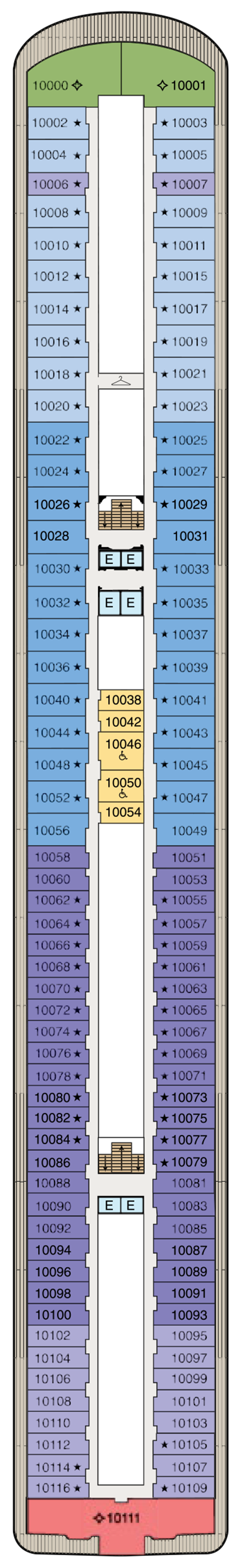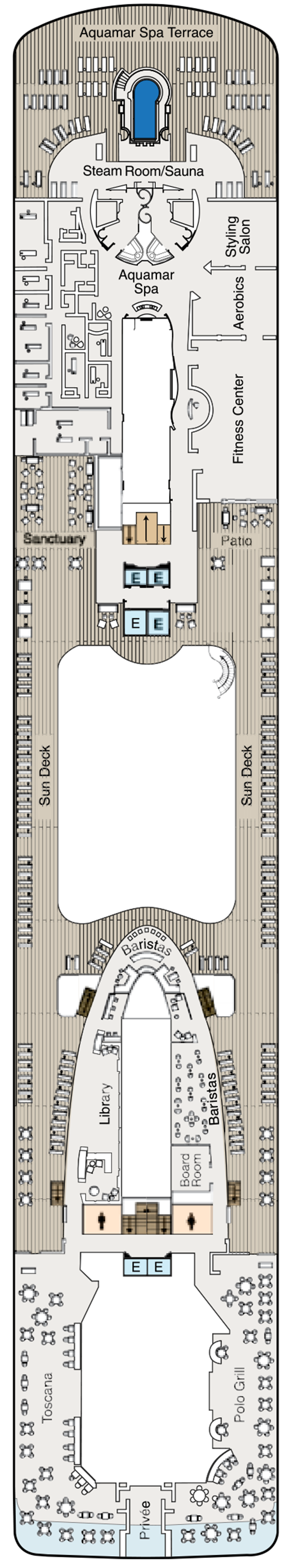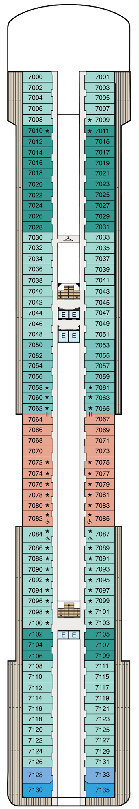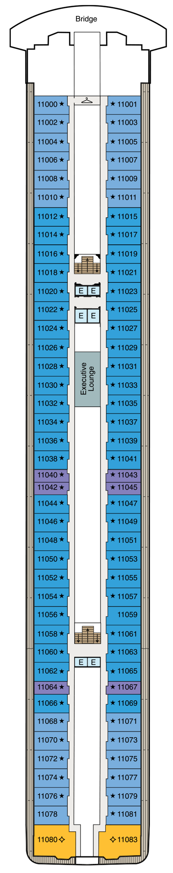 Ces cabines de 26 mètres carrés joliment décorées offrent la plupart des équipements de luxe de nos suites Penthouse, notamment une véranda privée, un coin salon feutré, un mini-bar/réfrigérateur et une grande salle de bain en marbre et granit dotée d’une grande baignoire/douche et d’une douche séparée. Vous bénéficierez également d’un accès au Salon Concierge privé où vous attendent un concierge dédié, des magazines, des journaux quotidiens, des boissons et des collations offertes.