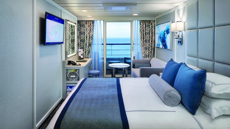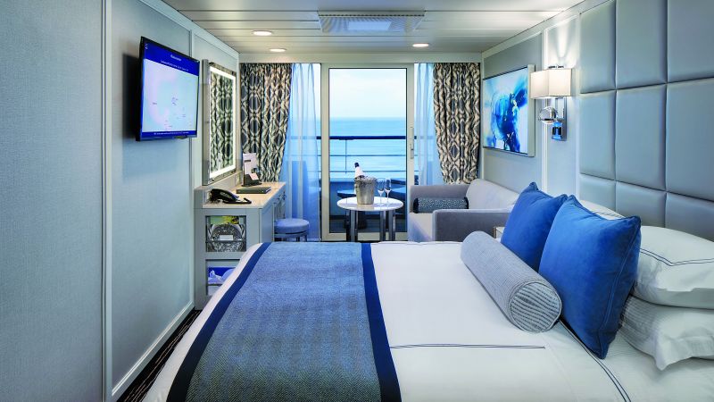 Les cabines Veranda Concierge bénéficient d’un emplacement privilégié sur le navire, ainsi que des services exclusifs des catégories Concierge. Ces cabines de 26 m2, joliment décorées, offrent la plupart des équipements mis à la disposition des passagers des suites Penthouse, notamment une véranda privée, un coin salon feutré, un mini-bar/réfrigérateur et une grande salle de bain en marbre et granit avec une grande baignoire/douche et une douche séparée.