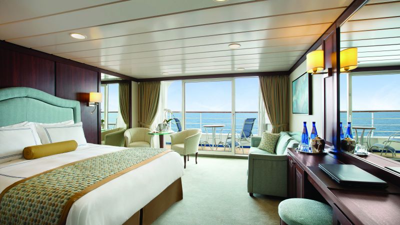 Des meubles faits sur mesure, des finitions en pierre exotique, des têtes de lit rembourrées et un éclairage chic ne sont que quelques-unes des améliorations apportées à ces cabines de 20 m2 qui disposent également d'une véranda privée en teck pour apprécier les océans aux panoramas toujours changeants. Les commodités de chaque cabine comprennent un bureau, un mini-bar réfrigéré, une table de petit-déjeuner et un coin salon spacieux.