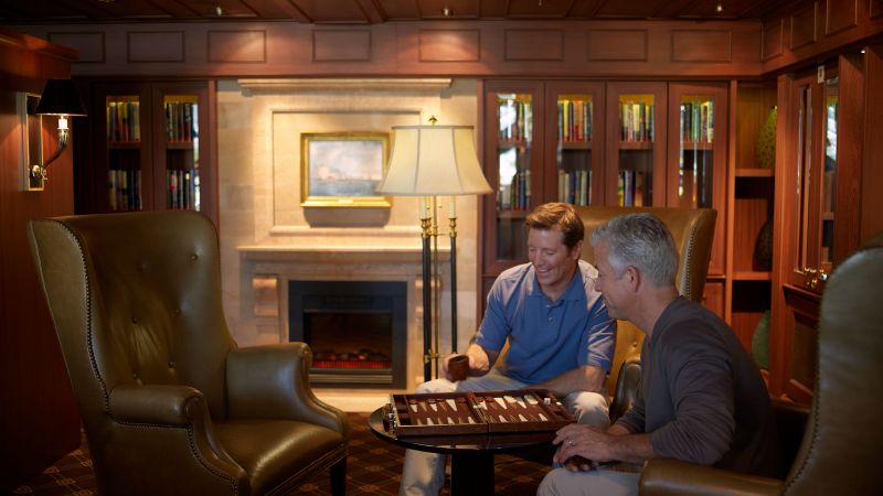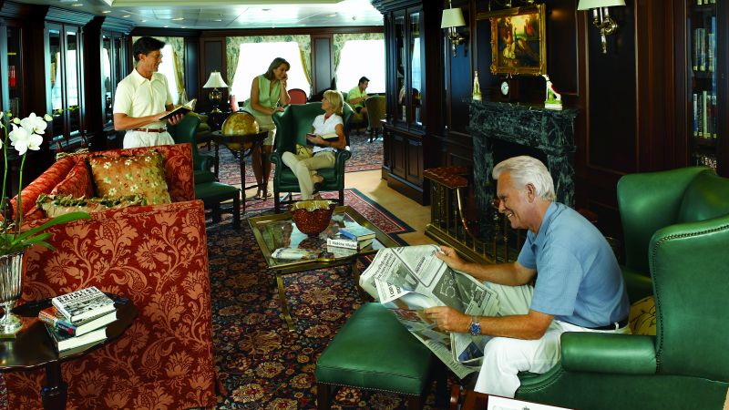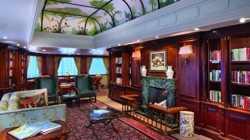 Plus de 2 000 livres et journaux sont disponibles dans cette bibliothèque au style anglais. Guides touristiques pour en apprendre plus sur la prochaine escale, romans, thrillers, ou œuvres de la littérature classique, il y a de quoi se détendre, s’évader et se cultiver.