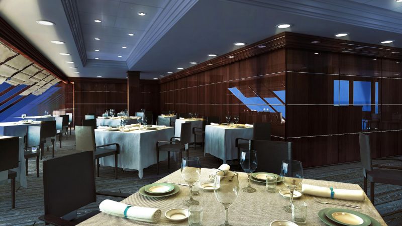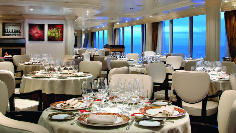 Restaurant principal, à bord du navire, le Grand Dining Room s’inspire des plus grands restaurants étoilés. Décoration élégante, fauteuils confortables, assiettes en porcelaine, verres en cristal de Riedel, couverts en argent. Le personnel est ouvert et à l’écoute des demandes des passagers.