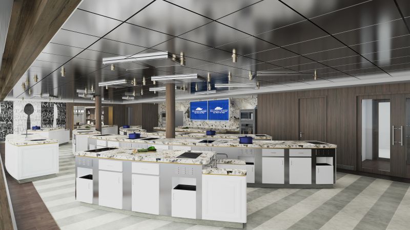 Pour le plaisir des papilles… Après avoir cuisiné de succulentes recettes en compagnie des chefs, la Culinary Center Dining Room attend les passagers pour déguster leurs créations dans un décor chic et raffiné, avec de grandes baies vitrées qui ouvrent sur l’immensité de l’océan.