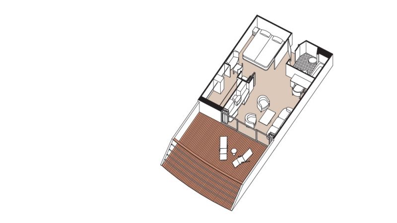 Située le long de la poupe du Seven Seas Mariner®, cette suite offre une vue panoramique et un vaste balcon suffisamment grand pour accueillir un salon d'extérieur. À l'intérieur, la chambre est séparée du coin salon. Vous aurez également un majordome personnel qui répondra à vos besoins.