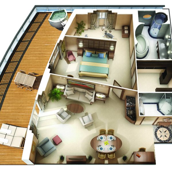 Explorez les suites et cabines du Oceania Riviera mais également les lieux de vie des différents ponts. Pour connaître l'emplacement exact des cabines et des lieux de vie, consultez les plans des ponts du Oceania Riviera