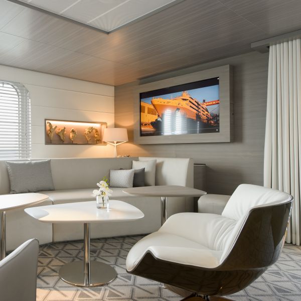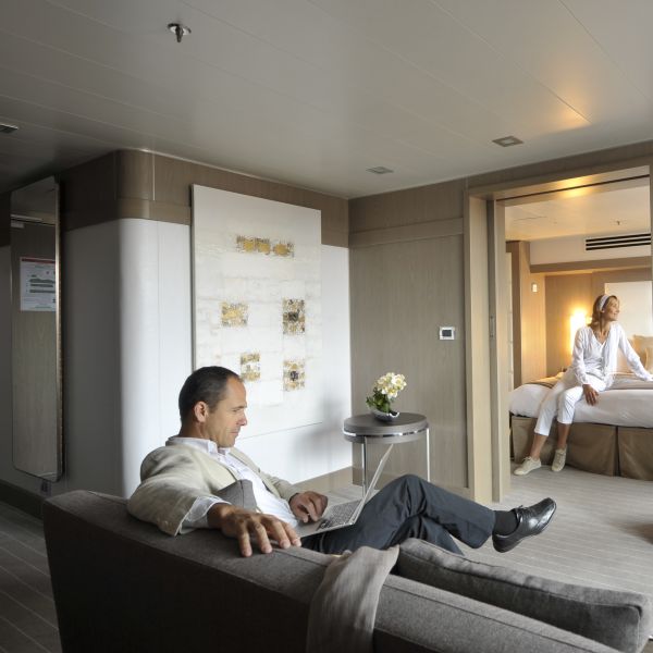 Comme sur tous les navires, les passagers peuvent choisir de rester dans leur cabine pour manger en toute intimité. Le personnel leur servira, à toute heure du jour ou de la nuit, des plats des restaurants, un petit déjeuner, ou tout simplement des snacks et rafraîchissements, pour profiter au maximum du confort de la cabine.