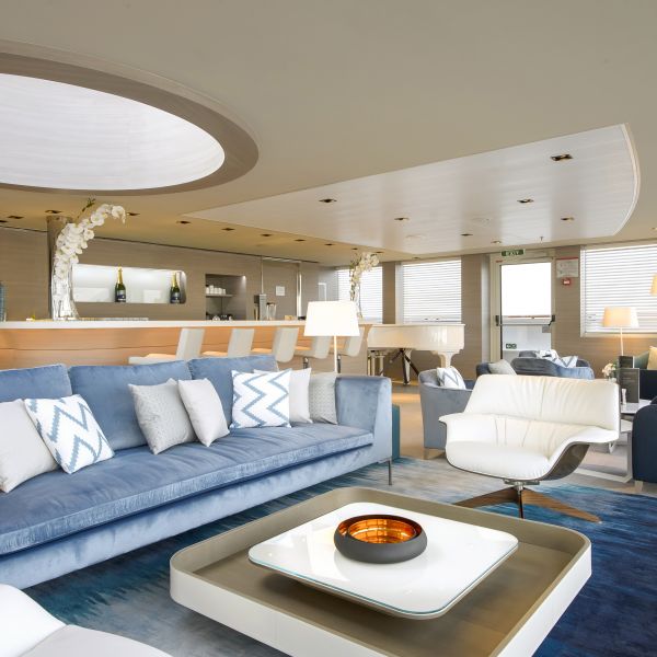 Situé sur le pont 3, ce salon propose aux passager un vaste espace intérieur, mais aussi un espace extérieur, pour se retrouver en famille ou entre amis, apprécier l’atmosphère du navire. Un bar et un salon de thé proposent des boissons et des douceurs tout au long de la journée, et en soirée, on peut assister à des animations musicales, et le salon se transforme alors en dance-floor pour les plus énergiques.