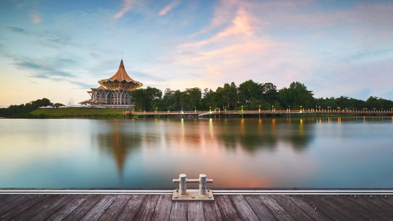 Vous pourrez vous balader le long de la rivière Sarawak, pour aller voir son étrange mosquée rose.