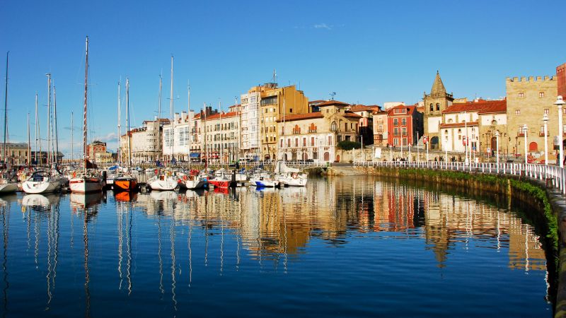 Située sur la côte nord de l’Espagne, au bord du Golfe de Gascogne, Gijon est une ville au riche passé maritime. La presqu’île de Cimadevilla est le quartier des pêcheurs, avec des bâtiments caractéristiques, qui lui donnent une ambiance très particulière. Les rives de ce quartier ouvrent sur de très belles plages de sable, bordées de promenades, et jalonnées de bars, de restaurants et de petites boutiques. En arrière-plan, la superbe chaîne des Asturies surplombe la ville et offre de magnifiques possibilités de randonnées.