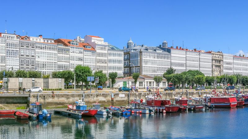 Ville située en Galice, sur la pointe nord-ouest de l’Espagne, La Corogne a été bâtie sur un promontoire. La vieille ville, qui date du Moyen-Âge, est parcourue de petites ruelles pleines de charme, qui mènent aux magnifiques arcades de la Plaza de Maria Pita. Le front de mer, avec l’incontournable Tour d’Hercules est très vivant et offre un magnifique panorama ouvrant sur toute la baie.