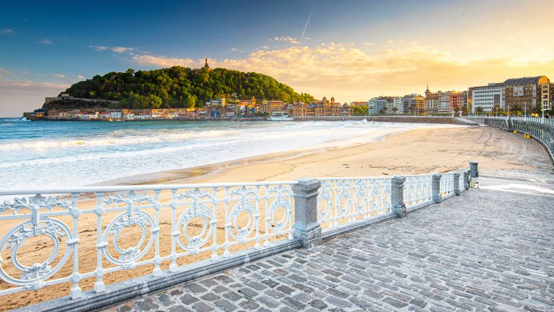 Au cœur de la côte Basque, Saint-Sébastien est proche de la frontière avec la France. C’est une cité balnéaire adossée à la magnifique chaîne des Pyrénées. La ville est connue pour ses superbes plages et ses promenades avec une multitude de boutiques, cafés et restaurants. Se promener dans la vieille ville est un incontournable quand on visite Saint Sébastien. Les petites ruelles pittoresques et la superbe place du Marché sont des endroits très festifs où les locaux et les visiteurs se retrouvent autour de délicieux tapas, qui comptent parmi les meilleurs du pays !