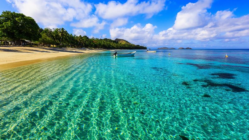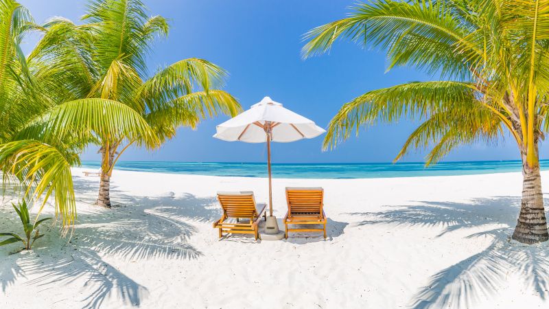 Palmiers, ciel d’azur, mer turquoise et sable blanc, pour une croisière placée sous le signe de la détente et du farniente.