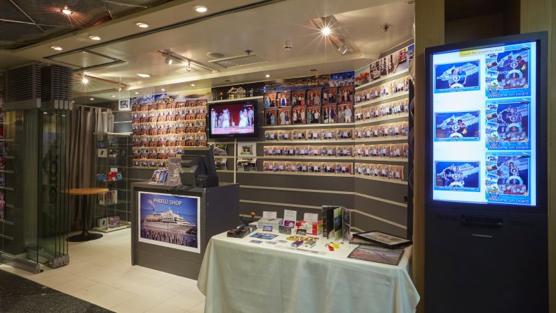 La boutique du bord propose les incontournables souvenirs, cartes postales, vêtements aux couleurs de la compagnie, bijoux, mais aussi des produits de première nécessité, en cas d’oubli.