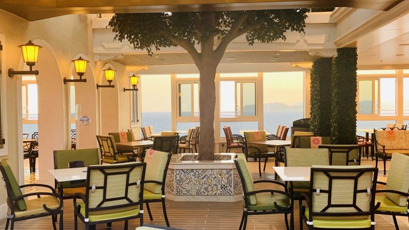 Restaurant réservé pour les passagers voyageant en suites, le Ristorante Casanova est néanmoins accessible aux autres passagers, selon la disponibilité, et avec un supplément. Dans un décor flamboyant, on s’attable à l’intérieur pour le déjeuner ou le dîner, ou on s’installe à l’extérieur pour un verre ou un apéritif.