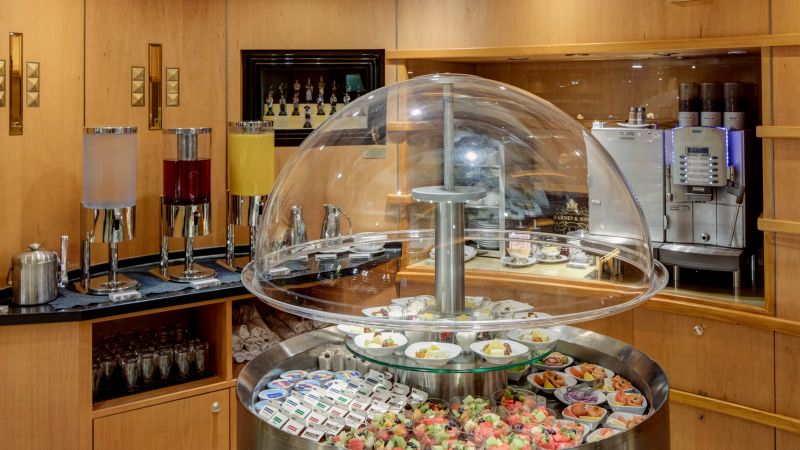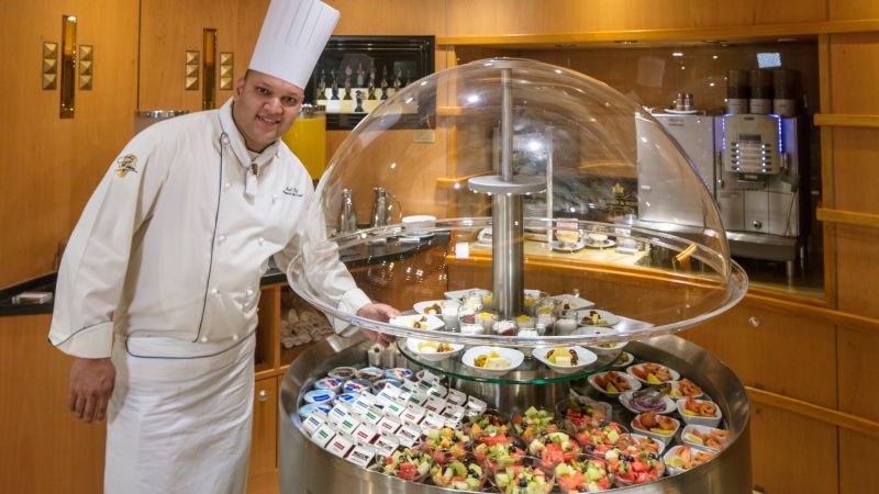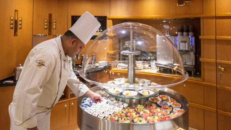 Pour un petit-déjeuner élégant, un déjeuner tranquille ou un dîner inoubliable composé de plusieurs plats, ce restaurant est votre destination. Dans les coulisses, notre Conseil culinaire®, une équipe d'élite composée de chefs de renommée mondiale, et nos talentueux chefs exécutifs à bord ont travaillé pour que chaque plat atteigne la perfection. Pour le dîner, choisissez parmi les classiques tels que la longe d'agneau désossée en croûte, le poulet rôti au romarin, la cuisine d'inspiration régionale ou bien des plats végétariens préparés avec art. Enrichissez votre voyage culinaire avec une vaste sélection de vins, choisis avec soin par James Suckling, un des plus importants et des plus influents, critique en vins.
