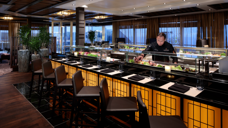 Pour un petit-déjeuner élégant, un déjeuner tranquille ou un dîner inoubliable composé de plusieurs plats, ce restaurant est votre destination. Dans les coulisses, notre Conseil culinaire®, une équipe d'élite composée de chefs de renommée mondiale, et nos talentueux chefs exécutifs à bord ont travaillé pour que chaque plat atteigne la perfection. Pour le dîner, choisissez parmi les classiques tels que la longe d'agneau désossée en croûte, le poulet rôti au romarin, la cuisine d'inspiration régionale ou bien des plats végétariens préparés avec art. Enrichissez votre voyage culinaire avec une vaste sélection de vins, choisis avec soin par James Suckling, un des plus importants et des plus influents, critique en vins.