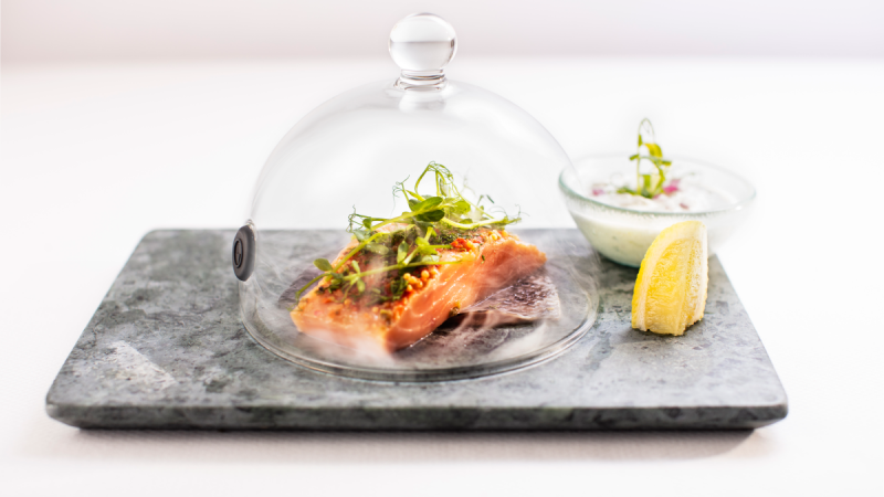Au menu du saumon d'Alaska, du boeuf élevé dans l'état de Washington ou encore du homard pêché dans le Pacifique Nord, le tout dirigé par le chef du conseil culinaire David Burke.