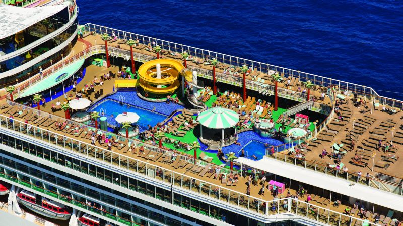 Pendant la journée, de nombreuses activités s’offrent aux passagers : piste de jogging, salle de sport et terrains de basket et de volley pour les plus sportifs, spa, piscine et jacuzzi pour se relaxer…
