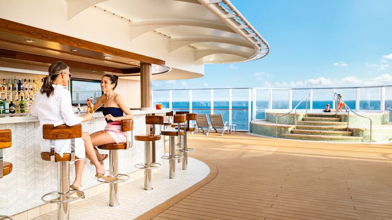 C’est l’endroit idéal pour se retrouver entre amis ou rencontrer d’autres passagers autour d’un délicieux cocktail, en admirant la vue sur l’océan.