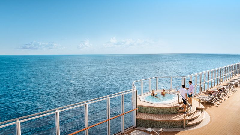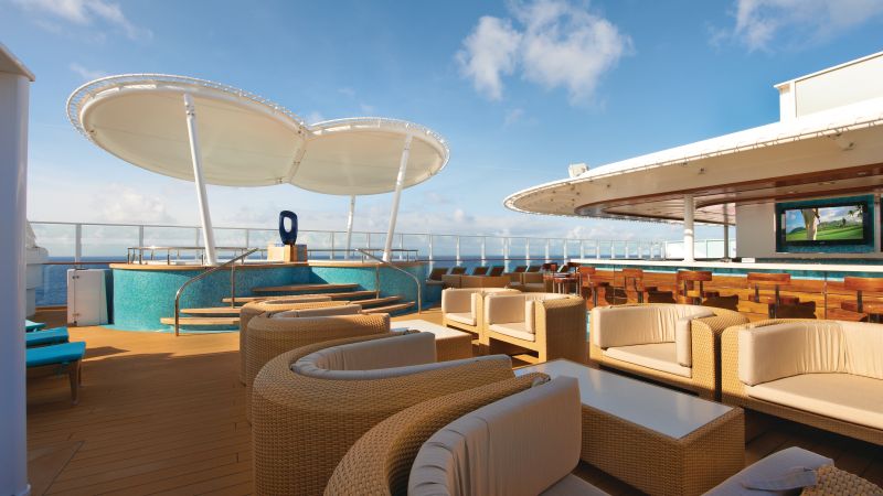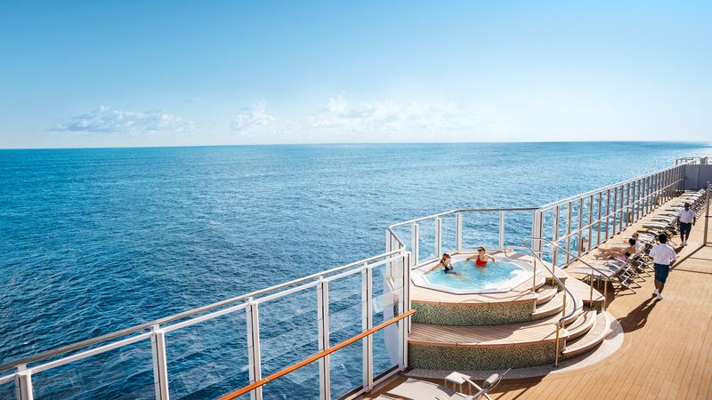Exclusivement réservé aux passagers de plus de 18 ans, le Beach Club Vibe garantit calme et sérénité, tout en offrant une vue imprenable sur l’horizon, depuis le grand jacuzzi ou les chaises longues. On y sert des cocktails et boissons fraiches (ou non).