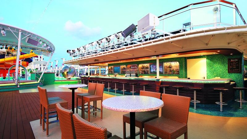 Situé à l’arrière du pont 11 du Pride of America, ce bar en extérieur, est le lieu idéal pour déguster entre amis ou en famille des cocktails tels qu’un Surf Rider ou un Polynesian ou bien une bière ou un verre de vin.