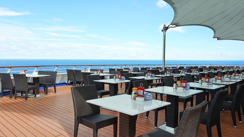 Great Outdoors est un restaurant-buffet situé sur les ponts supérieurs en extérieur. Il est ouvert pour les 3 repas de la journée, sans aucune surcharge, le prix est inclus dans le prix de la croisière.