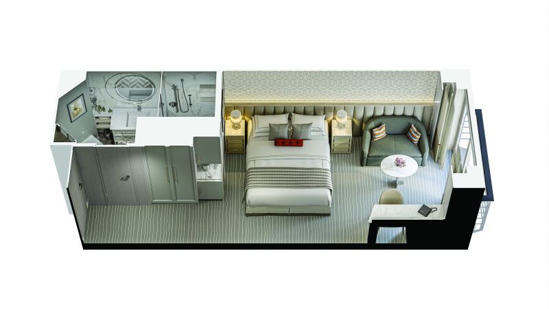 Somptueuses et spacieuses : Le design inspiré de ces cabines promet un confort et une attention sans compromis Les tons rappelant ceux de la terre et de la mer participent à donner cette ambiance de sérénité.