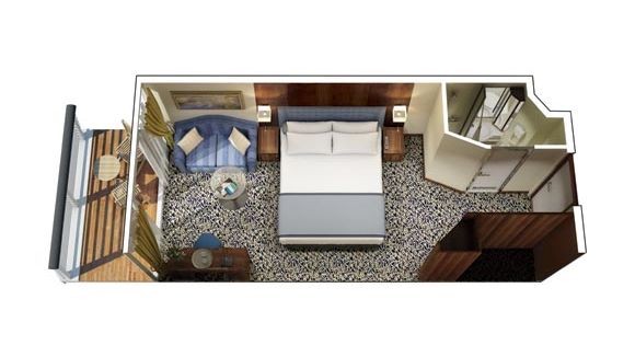 Les cabines Veranda Concierge bénéficient d’un emplacement privilégié sur le navire, ainsi que des services exclusifs des catégories Concierge. Ces cabines de 26 m2, joliment décorées, offrent la plupart des équipements mis à la disposition des passagers des suites Penthouse, notamment une véranda privée, un coin salon feutré, un mini-bar/réfrigérateur et une grande salle de bain en marbre et granit avec une grande baignoire/douche et une douche séparée.