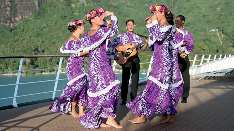 Le Grand Salon est le théâtre du navire, qui accueille les passagers pour assister au traditionnel spectacle. A bord du Paul Gauguin, des représentations de danses traditionnelles sont données, avec des danseurs et des chanteurs polynésiens.