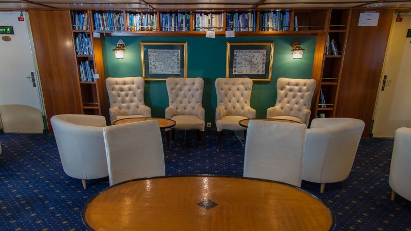 La bibliothèque, ouverte 24h/24, propose aux passagers des livres en rapport avec les régions polaires, des documents en plusieurs langues sur des sujets aussi variés que la faune, la biologie marine, l'écologie ou l'histoire. Les passagers y trouveront également des jeux de sociétés.