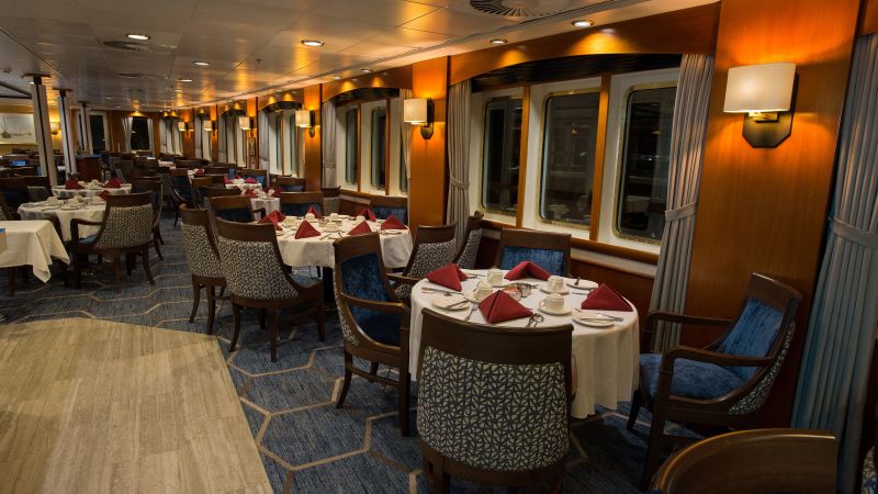 Il n'y a qu'une seule salle à manger à bord de l'Océan Adventurer, elle est située sur Upper Deck et contigüe au Clipper Club. Des menus spéciaux (végétarien ou sans gluten) peuvent être élaborés, pour cela il suffit d'en faire part au moment de la réservation et le rappeler à la personne en charge du service.
