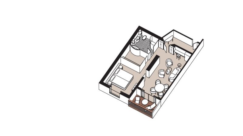 A vous de choisir entre le canapé de votre salon ou celui de votre balcon. Apprécierez-vous un petit-déjeuner sur votre balcon ou dans votre suite ?  Vous aurez l'embarras du choix. La suite offre une grande chambre avec un lit king-size, un dressing spacieux et une magnifique salle de bain. Vous êtes également encouragé à utiliser les services d'un majordome personnel, toujours disponible pour vous rendre le moindre services.