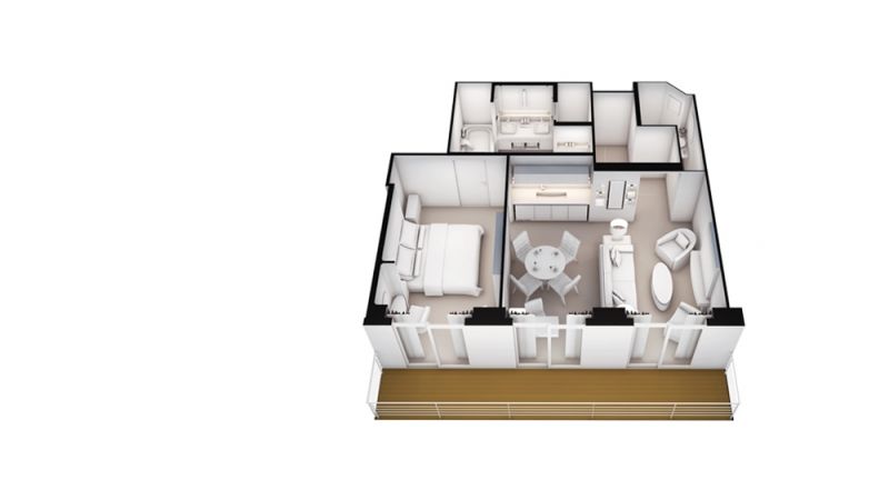 Cette suite vous accueille dans une ambiance luxueuse et confortable. Détendez-vous dans le coin salon après une journée passionnante à terre et profitez de la sélection de canapés frais livrés par votre majordome, et profitez de votre balcon privé pour admirer les panoramas en constante évolution et réfléchir à votre prochaine croisière.