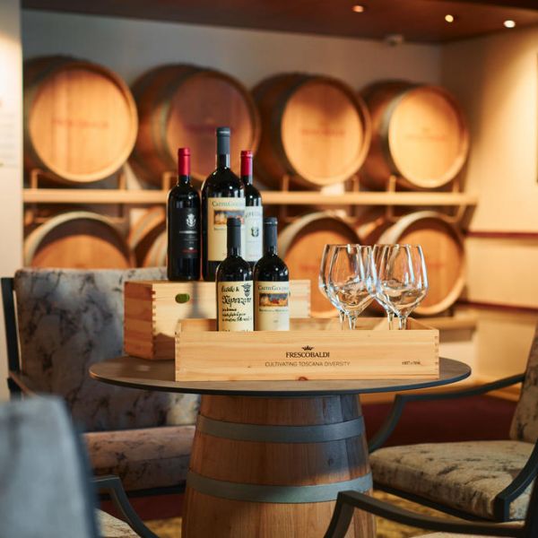 C’est dans un décor de cave traditionnelle, avec tonneaux, barriques et bouteilles de vins prestigieux, que les passagers se retrouveront pour déguster un verre de vin, rouge ou blanc selon les envies et les humeurs, le tout accompagné de planches gourmandes.