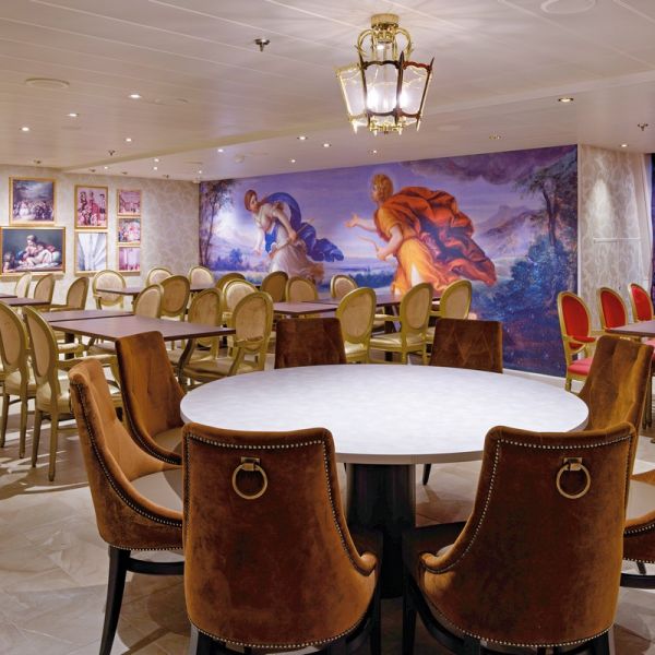 Situé à l’arrière du navire, le restaurant Dei Medici s’ouvre sur deux niveaux, dans un décor grandiose de palais florentin. C’est dans cette ambiance unique que les passagers dégusteront de délicieux plats d’inspiration méditerranéenne. C’est l’un des restaurants principaux à bord du Costa Firenze.
