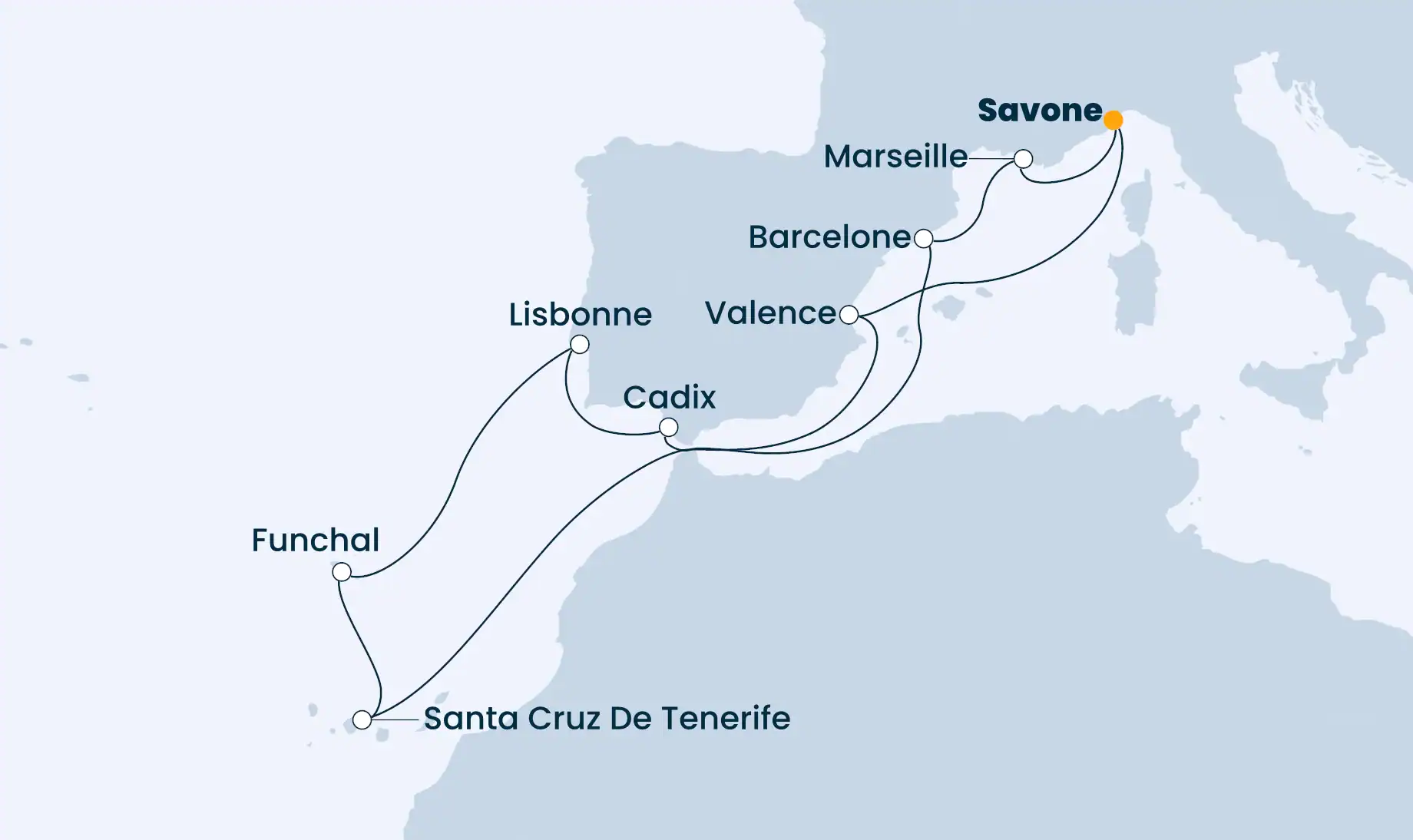 La Méditerranée et Îles de l'Atlantique, à partir de Savone