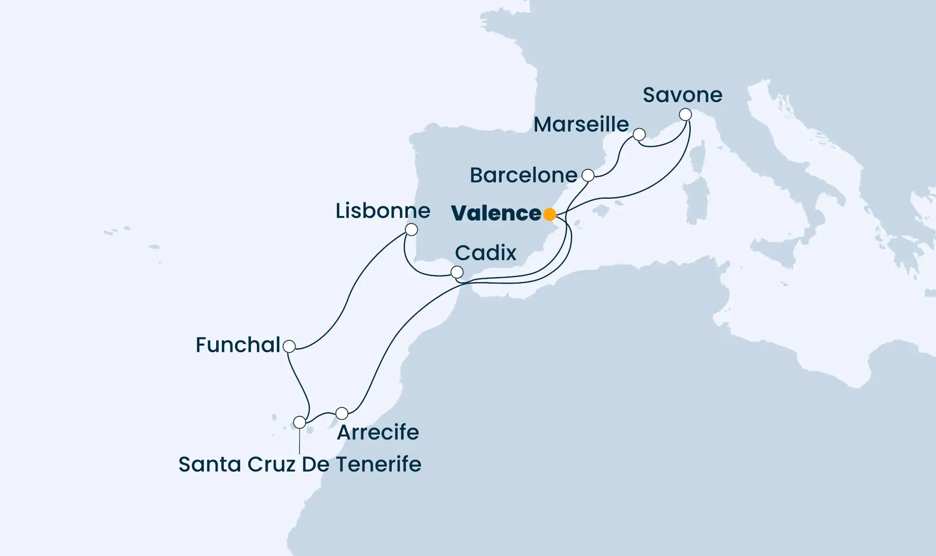La Méditerranée et Îles de l'Atlantique, à partir de Valence