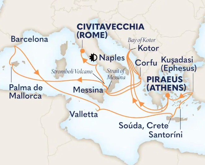 Toutes les escales et les amplitudes horaires indiquées sont données à titre indicatif et sont susceptibles d’être modifiées par les compagnies maritimes à tout moment, avant le départ ou pendant la croisière.