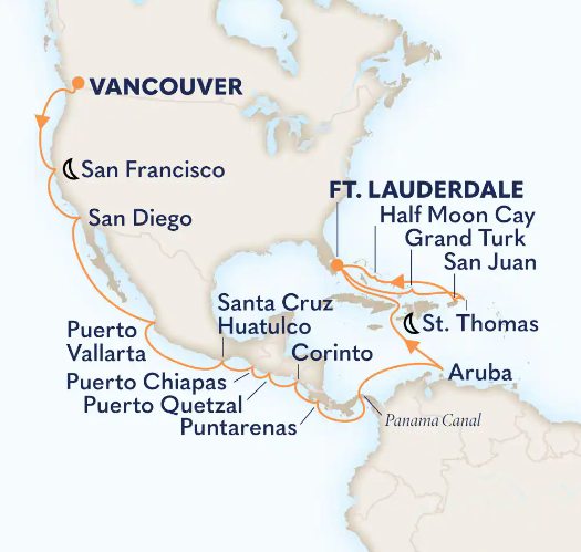 Toutes les escales et les amplitudes horaires indiquées sont données à titre indicatif et sont susceptibles d’être modifiées par les compagnies maritimes à tout moment, avant le départ ou pendant la croisière.