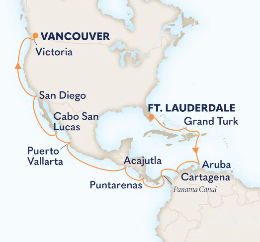 Toutes les escales et les amplitudes horaires indiquées sont données à titre indicatif et sont susceptibles d’être modifiées par les compagnies maritimes à tout moment, avant le départ ou pendant la croisière.