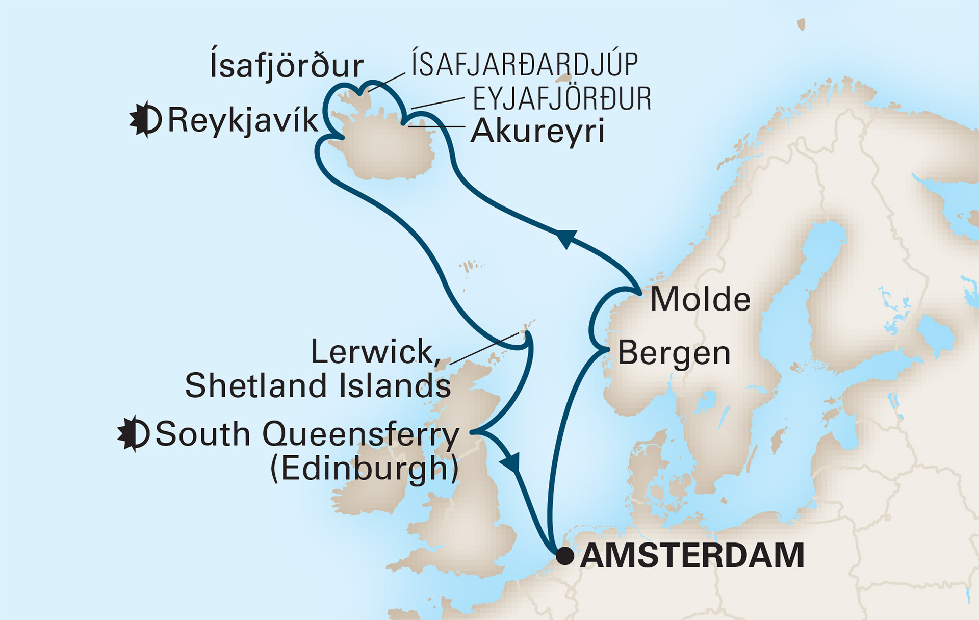 Admirez la beauté de l'île du Nord lors d'une croisière aller-retour en Europe au départ de Rotterdam. Parcourez Ísafjardardjúr et admirez les paysages islandais balayés par le vent. Explorez Reykjavik, Inverness et Stavanger.