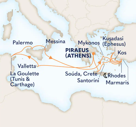Toutes les escales et les amplitudes horaires indiquées sont données à titre indicatif et sont susceptibles d’être modifiées par les compagnies maritimes à tout moment, avant le départ ou pendant la croisière.