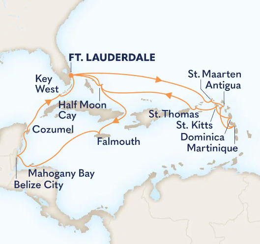 Toutes les escales et les amplitudes horaires indiquées sont données à titre indicatif et sont susceptibles d’être modifiées par les compagnies maritimes à tout moment, avant le départ ou pendant la croisière.