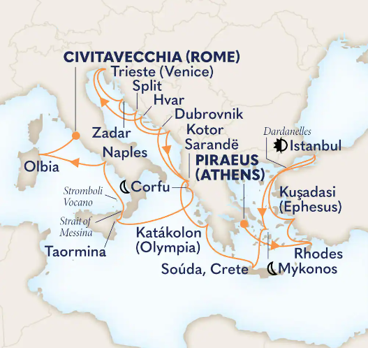 Toutes les escales et les amplitudes horaires indiquées sont données à titre indicatif et sont susceptibles d’être modifiées par les compagnies maritimes à tout moment, avant le départ ou pendant la croisière.