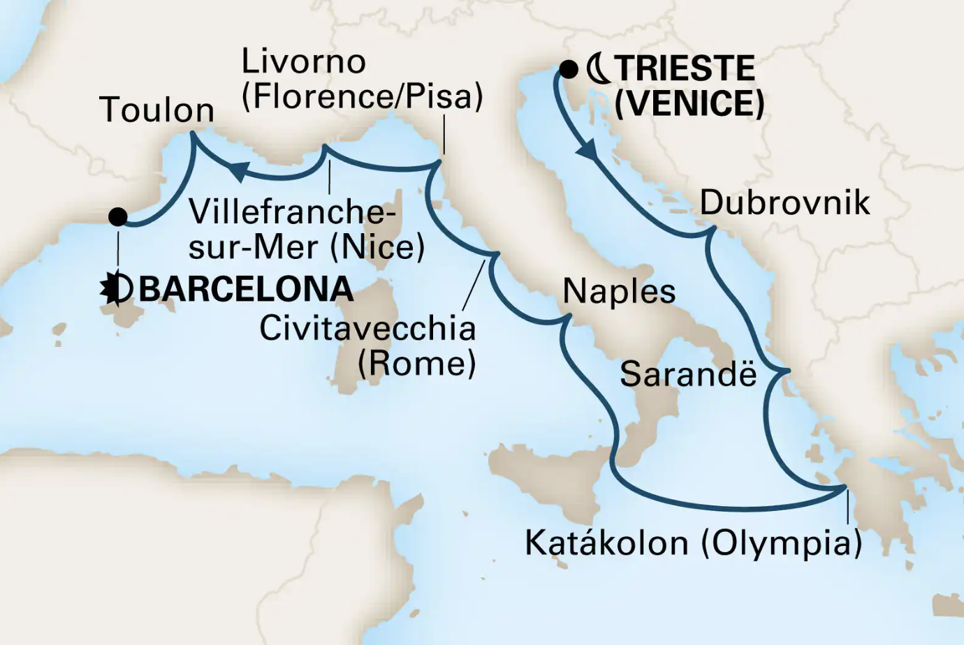 Toutes les escales et les amplitudes horaires indiquées sont données à titre indicatif et sont susceptibles d’être modifiées par les compagnies maritimes à tout moment, avant le départ ou pendant la croisière.