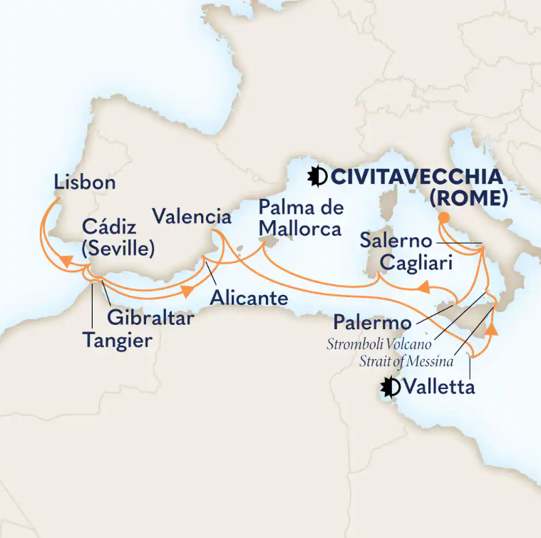 Toutes les escales et les amplitudes horaires indiquées sont données à titre indicatif et sont susceptibles d’être modifiées par les compagnies maritimes à tout moment, avant le départ ou pendant la croisière.