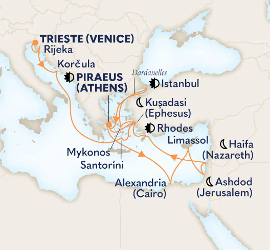 Départ : Trieste - Italie / Arrivée : Athènes (Le Pirée) - Grèce
