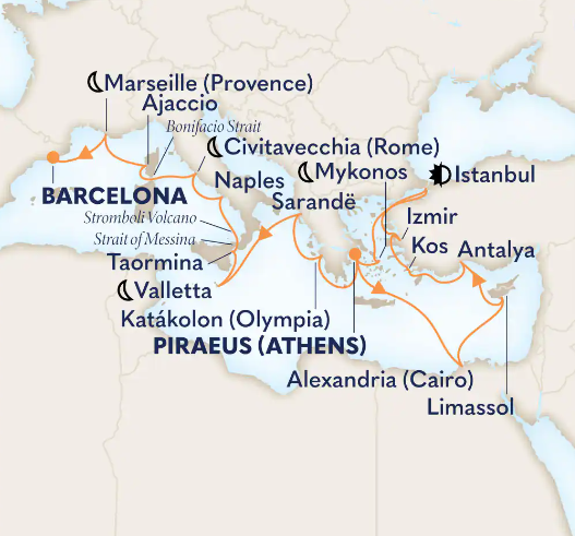 Toutes les escales et les amplitudes horaires indiquées sont données à titre indicatif et sont susceptibles d’être modifiées par les compagnies maritimes à tout moment, avant le départ ou pendant la croisière.
